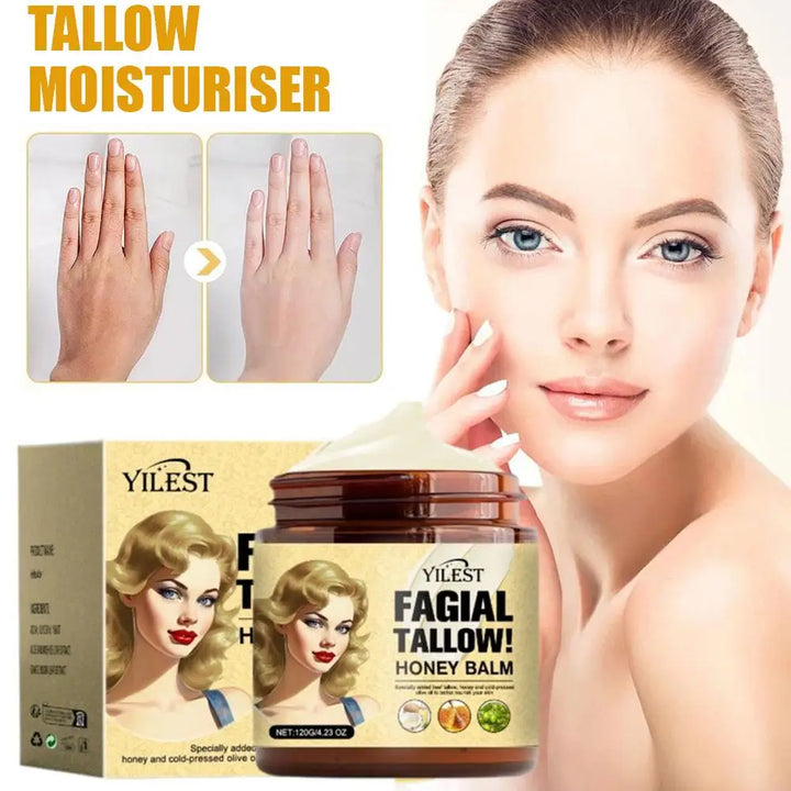 Imagine waking up with skin that's not only soft but radiantly glowing. Our balm, made from 100% grass-fed beef tallow and honey, penetrates deeply to hydrate and smoothen, banishing dryness for good.